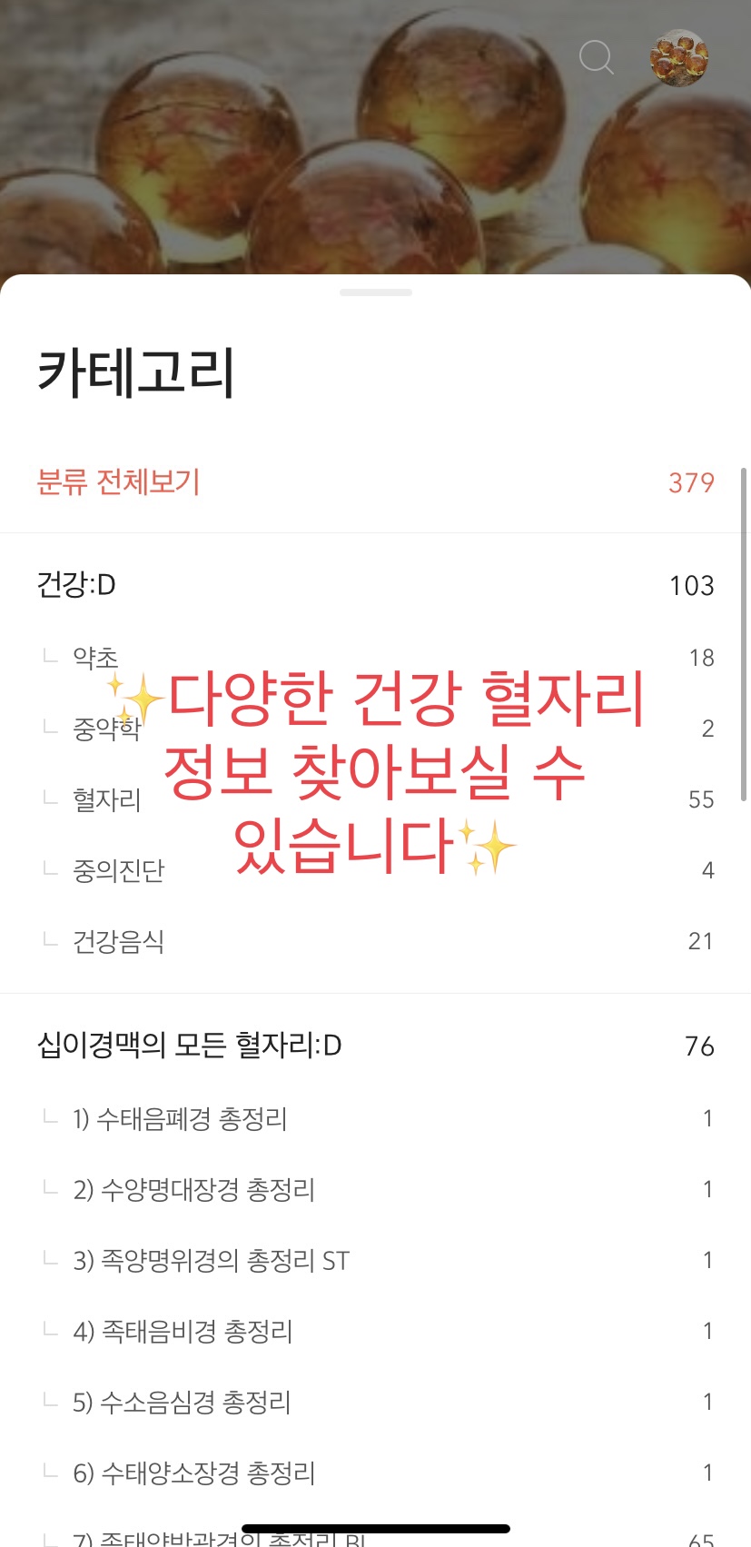 저의 티스토리 내 혈자리 등의 정보를 찾으실 때