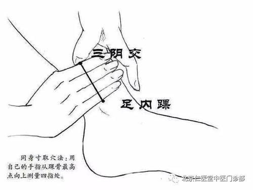 내복사뼈 위로 3촌, 경골 내측면의 후면부