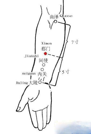 혈자리 : 신문, 내관, 합곡, 간유, 비유, 심유