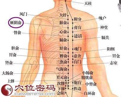 제4흉추 극돌 아래에서 좌우로 1.5촌 떨어진 부분