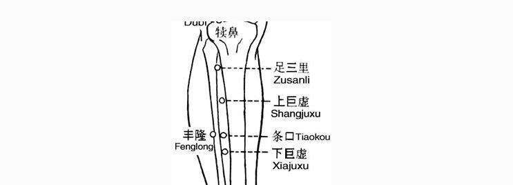 혈자리 : 족삼리, 상거허, 하거허, 음릉천, 폐유
