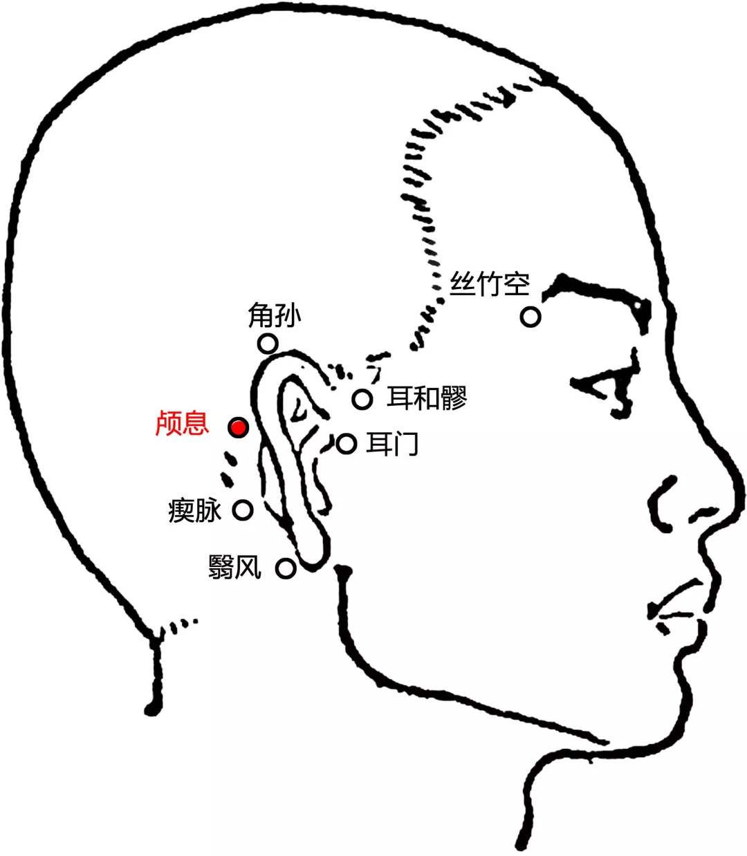 - 위치 : 머리의 측면, 구렛나루 뒤쪽, 귓바퀴 뿌리의 앞쪽.