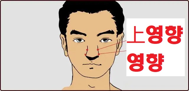 영향혈을 찾으셨다면 그 위로 콧대에서 쭉 내려와 콧망울이 시작되어 꺽이는 부분에서 가쪽에 위치하고 있습니다. 그 지점을 꾹 눌러보시면 뻐근한 감을 느끼실 수 있어요.