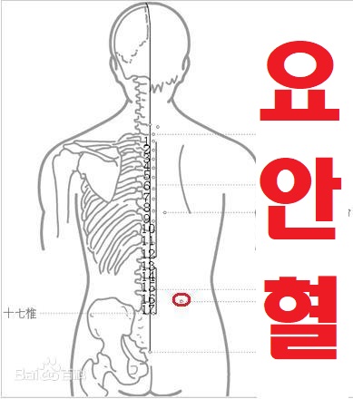 허리의 눈이라는 명칭의 요안혈은 요통, 생리통 등의 치료에 쓰이는 혈자리입니다.