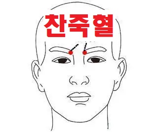 찬죽혈은 얼굴 눈썹 부위, 눈썹머리 안쪽으로 오목한 곳에 위치하고 있습니다.